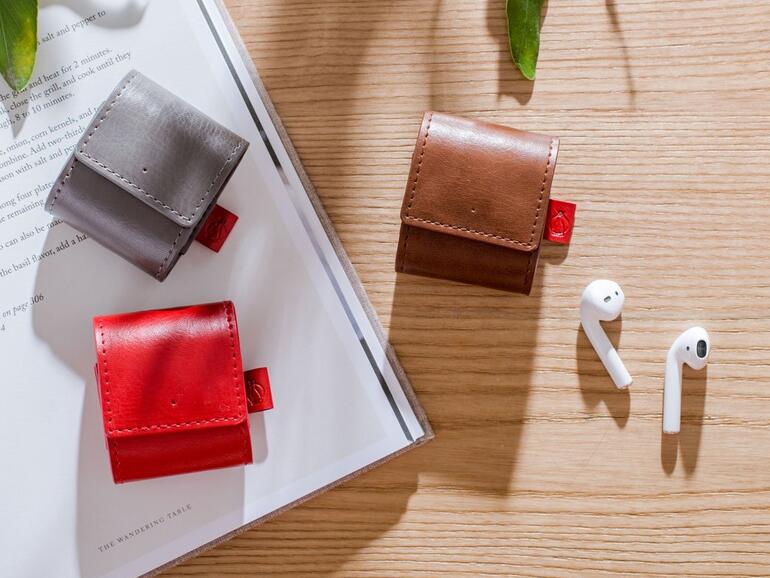 Das es auch schön gehen kann, zeigt die Firma HardCider Labs mit ihrem ElectroLeather-Case für die AirPods. Die Kopfhörer werden auch hier einfach mit dem Case in die Lederhülle gesteckt und können nun kabellos mit Strom versorgt werden. Die Hülle ist in drei verschiedenen Farben erhältlich und kostet direkt beim Hersteller aktuell 15 US-Dollar (umgerechnet knapp 13 Euro).