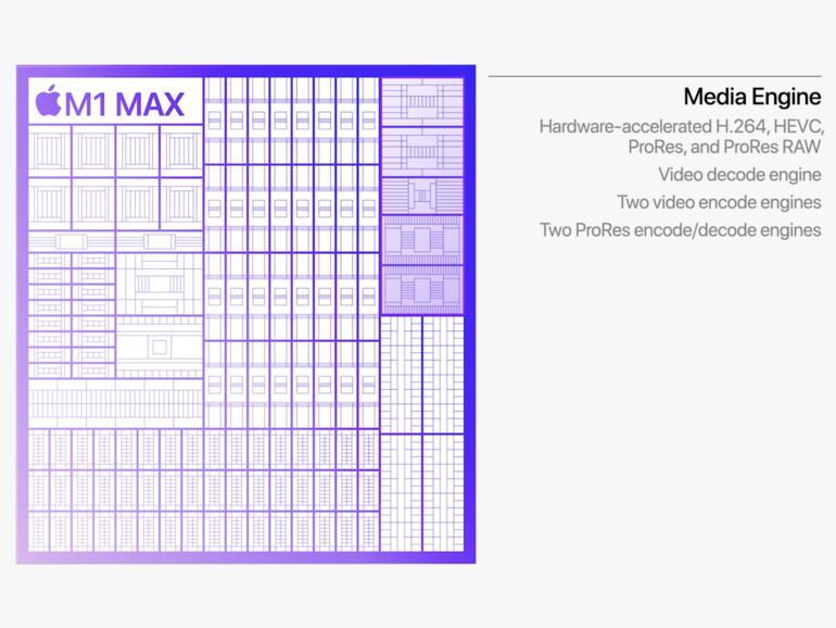 Apple schreibt zu der neuen M1 Max-Leistung offiziell:
