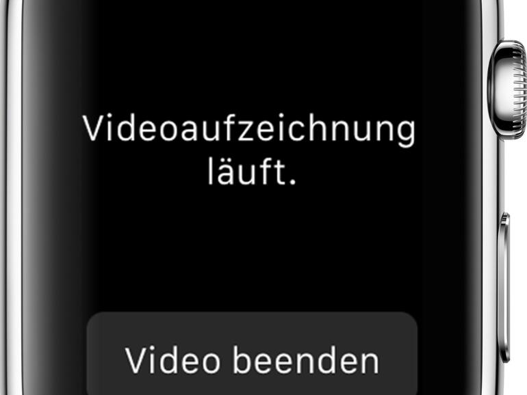 Normalerweise lassen sich mit der Kamera-App der Apple Watch nur Fotos schießen und ein kurzer Timer einstellen. Startet man jedoch am iPhone eine Videoaufnahme (Zeitraffer, Slow-Mo oder normales Video), ändert sich das Menü auf der Apple Watch und lässt einen die Aufnahme zumindest beenden. Ein Livebild wird in der aktuellen Version noch nicht übertragen.