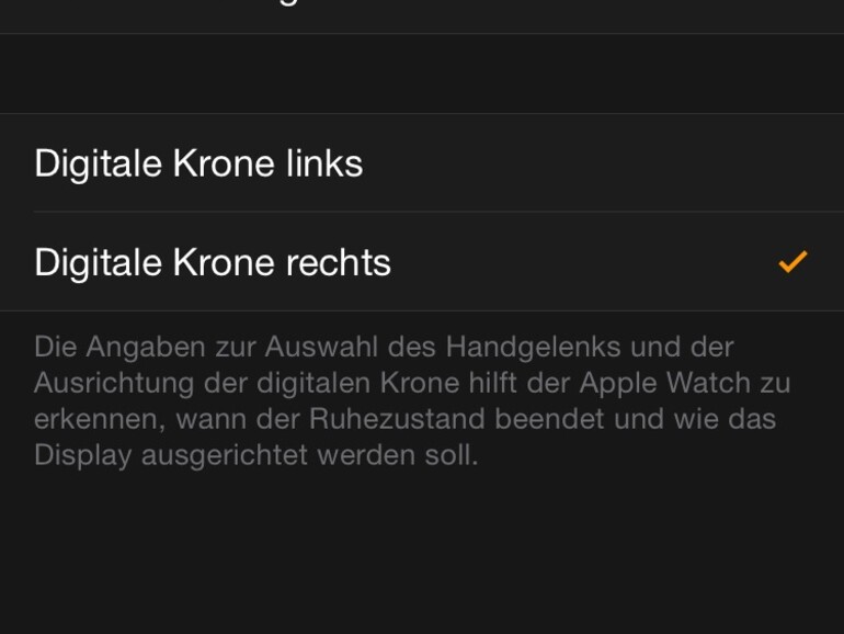Bei klassischen (vor allem bei analogen) Uhren hatten die Träger, die die Uhr am rechten Handgelenk platzieren wollen, nie eine Wahl, wohin die Krone zeigen soll – es sei denn, sie wollten mit einem verkehrt herum ausgerichteten Ziffernblatt leben. Unter „Allgemein“ > „Uhrausrichtung“ lässt sich das bei der Apple Watch allerdings recht komfortabel anpassen.