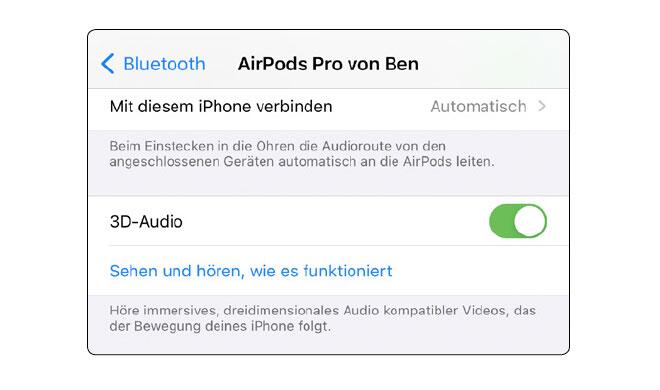 Ziehe den Regler neben „3D-Audio“ nach rechts. Probiere es aus.