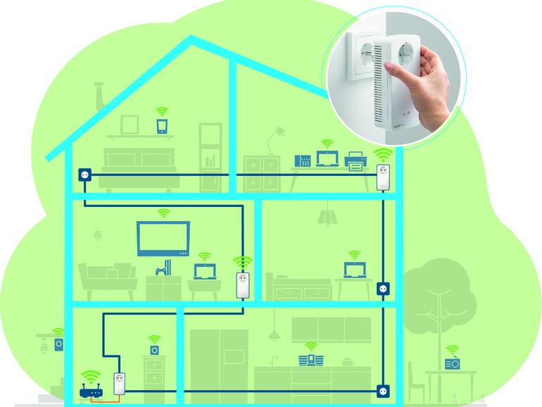 Jede Steckdose ist damit ein Zugangspunkt für einen WLAN-Hotspot, der dein bestehendes Netzwerk erweitert. Dank der Mesh-Technologie und dem Access-Point-Steering wechselt zum Beispiel dein Smartphone nahtlos und ohne Unterbrechung zwischen den einzelnen Hotspots und hat so immer den besten Empfang. Und dank Multi-User-MIMO können auch mehrere Geräte gleichzeitig per WLAN mit schnellem Internet versorgt werden – selbst wenn die ganze Familie im Netz surft.