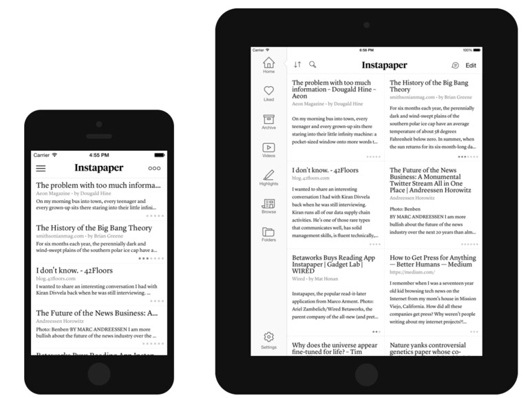 Instapaper befreit sich ab sofort von seinem kostenpflichtigem Premium-Dienst. Dieser kostete die Abonnenten 2,69 Euro pro Monat beziehungsweise 26,99 Euro im Jahresabo. Vorausgezahlte Abos sollen entsprechend erstattet werden, da sämtliche Funktionen jetzt kostenfrei für alle Nutzer verfügbar sind. Auch wenn dieser Schritt nicht völlig unerwartet war, kommt er dennoch überraschend schnell. Denn erst im August hatte Inspirations-Portal Pinterest den Lese-Dienst übernommen.