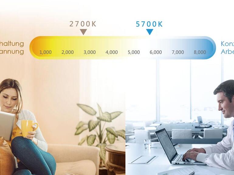 […]Die WiT sorgt dank stufenlos einstellbarer Farbtemperatur von 2.700k bis 5.700 Kelvin stets für das passende Licht: Warmweiß für entspanntes Lesen, Neutralweiß für konzentriertes Arbeiten oder auch Tageslichtweiß für eine aktivierende Wirkung. Zusätzlich erfasst ein integrierter Sensor das Umgebungslicht und stimmt die Leuchtintensität der WiT perfekt darauf ab.[…]