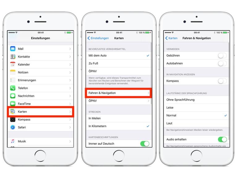 So ändern Sie die Lautstärke der Sprachnavigation für die Karten-App