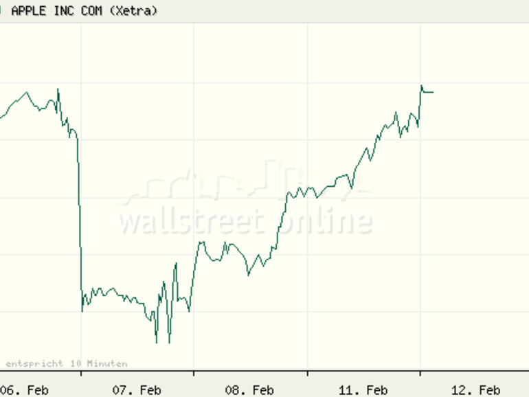 Im Laufe des gestrigen Tages stieg nach dieser Verlautbarung das AAPL-Wertpapier von rund 84 Euro (rund 125 US-Dollar) auf knapp 90 Euro (knapp 130 US-Dollar) an.