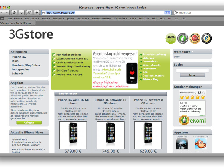 Nicht zuletzt hat sich Apple mit 3gstore auch ein Ziel ausgesucht, das dem kalifornischen Unternehmen schon länger ein Dorn im Auge ist: Immerhin arbeitet dieser David gegen Goliaths Pläne, das iPhone in Deutschland exklusiv an T-Mobile zu binden. Und da Apple derlei mit Blick auf das Europäische Wettbewerbsrecht nicht verhindern kann, mögen Urheberrechtssticheleien nun ein Knüppel sein, den man der Konkurrenz in die Beine zu werfen versucht. Um 3gstore zum Straucheln zu bringen, reicht dies jedoch nicht: Kurzerhand fertigte man eigene Aufnahmen des iPhone an und stellte sie unter freier Lizenz ins Netz. Auf das nun jeder iPhone-Fotos auch abseits der Berichterstattung verwenden kann. Ohne auf das Urheberrecht achten zu müssen.
