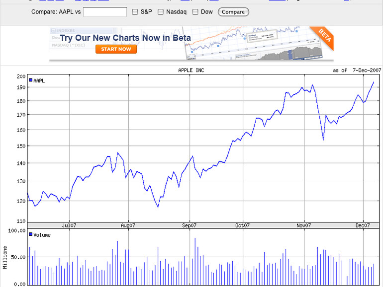 Nun wird es also Zeit, das Börsenjahr 2008 in Augenschein zu nehmen: Der Londoner Investor Georges Yared hat sich mit vier britischen Fonds-Verwaltern über Apples Aktienzukunft unterhalten und kommt zum Ergebnis, dass das Papier weiterhin ein Kauf ist. Oberflächlich betrachtet habe Apple derzeit ein tolles Produktangebot, ein tieferer Blick zeige, dass auch die Margen und Preispolitik stabil und wirtschaftlich seien. Außerdem habe man sich rechtzeitig gute Preise bei den Zulieferern versichert.