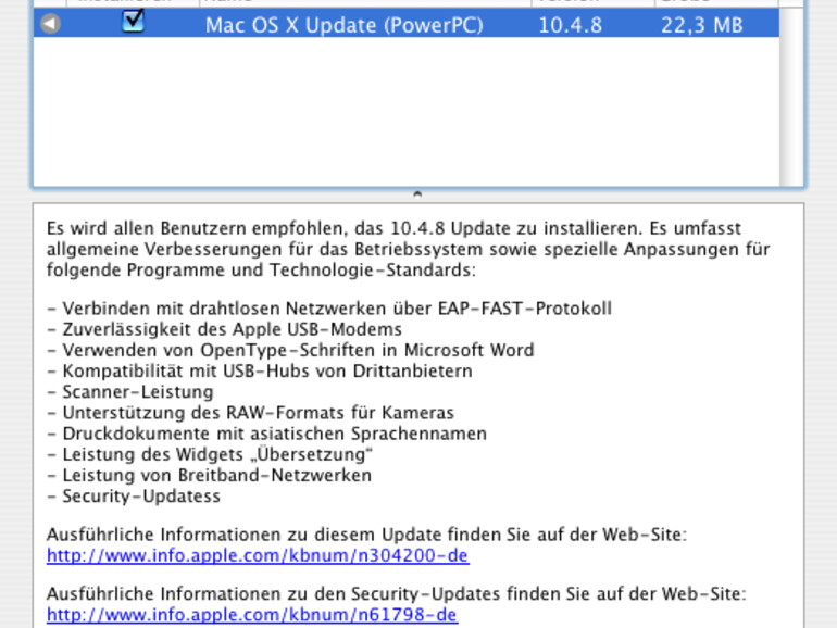Kombo-Aktualisierungen, also die Updates, die von 10.4.0 bis hin zu 10.4.8 alle Aktualisierungen enthalten, stehen ebenfalls sowohl für Intel- als auch für PowerPC-Macs zur Verfügung.