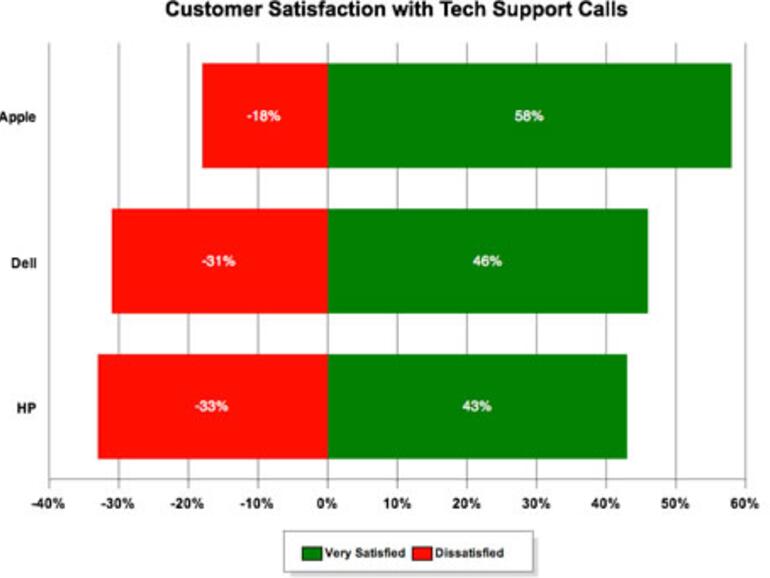Die Umfrage wurde in den USA durchgeführt, wo Apple einen eigenen Telefonsupport unterhält. Vor allem die Effektivität der telefonischen Unterstützung durch Apple-Techniker beeindruckte die Kunden: über die Hälfte der Probleme konnte direkt am Telefon gelöst werden. Dagegen kamen die Techniker bei Dell auf 45 Prozent, HP gar nur auf 39 Prozent.