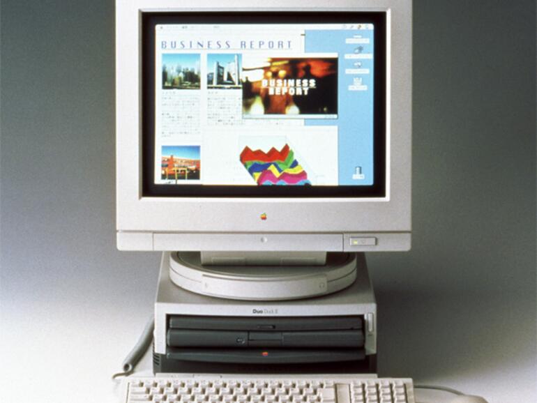 Ein Computermonitor, darunter ein Plastikgehäuse, das ein Apple-Notebook aufnehmen konnte: Unter dem Namen "PowerBook Duo" erschien im Oktober 1992 das erste Hybridgerät, das ein vollständiges PowerBook mit einem Dock verband. Dieses enthielt seinerseits mehr RAM- und Festplattenspeicher und einen eigenen Monitor nebst Tastatur und Maus. Auf diese Weise ließ sich ein reduzierter Rechner für unterwegs entnehmen und zu Hause durch das Dock in einen umfangreichen Desktop-Mac verwandeln. Das Gerät kostete seinerzeit 2250 US-Dollar und wurde über die Jahre immer weiter gepflegt - bis schließlich im Februar 1997 die Produktion der Duo-Reihe eingestellt wurde.