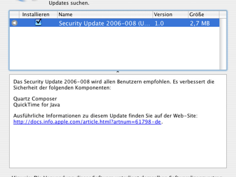 Die Probleme existieren nur unter 10.4, weshalb die Aktualisierung auch nur für Macs mit Mac OS X 10.4.8 und Mac OS X Server 10.4.8 in Frage kommt. Geladen werden kann das 2,7 MB große Update über die Softwareaktualisierung.