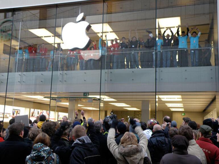 [Update, 7.12., 9:30 Uhr]: Inzwischen gibt es erste Videobeweise über die emotionale Eröffnung und den Enthusiasmus der Mitarbeiter im Apples Store: