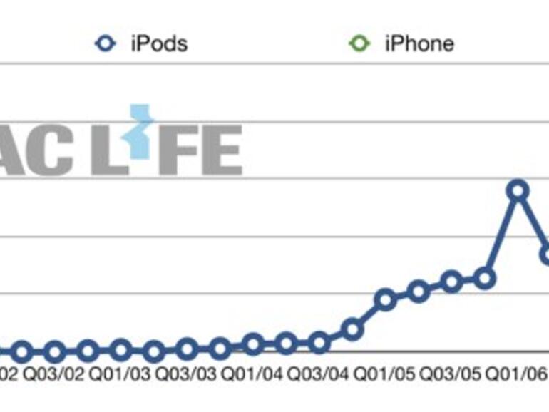 Insgesamt 22,727 Millionen iPods konnte Apple an die Frau/den Mann bringen, mehr als Analysten erwartet haben. Der iPod hält laut Conference Call über 70 Prozent Marktanteil in den USA, Großbritannien und Australien, der iPod touch habe einen großen Anteil an der so positiven Absatzentwicklung.