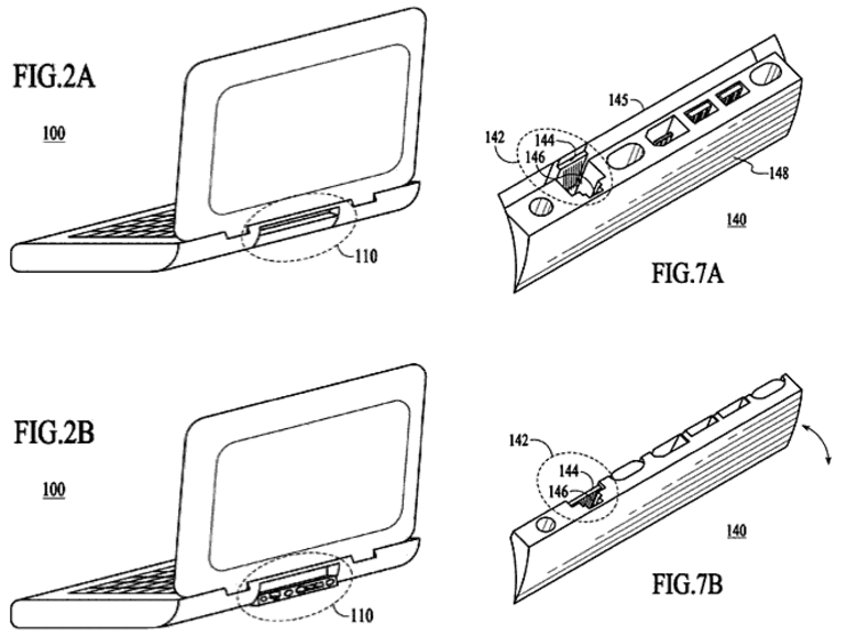 Derartige Systeme gibt es zwar bereits von anderen Herstellern, doch das Besondere und damit Schützenswerte an Apples Verbindungssystem ist, dass sich jeder Anschluss einzeln ausklappen lässt. Zudem ist durch das besondere Klappsystem nun endlich das ultradünne Notebook in erreichbarer Nähe - meinen zumindest AppleInsider und MacNN.