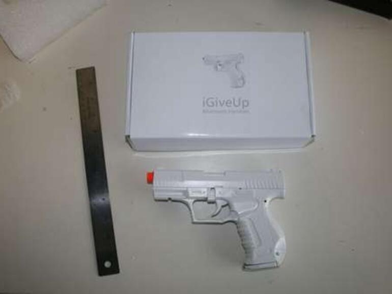 Der Auslöser dient als Ruftaste, der Griff als Mikrofon und in den Lauf wird hineingesprochen. Anscheinend fanden auch die Mitmenschen die umfunktionierte Knarre cool: Verpackt in einem Karton im typischen Apple-Stil, fand iGiveUp! Bei der Präsentation vor einem örtlichen Apple Store erstaunlichen Anklang. Wer sich mit dem Gedanken trägt, das Headset nachzubauen, hier findet sich die Anleitung.