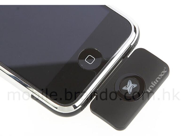 Der Exporteur Brando aus Hongkong bietet nun einen Adapter an, der die A2DP-Kompatibilität für das iPhone gewährleistet. Dazu wird er einfach unten an das Gerät gesteckt. Der Infinxx AP23 unterstützt nicht nur das iPhone, sondern bis auf den shuffle, auch jeden bisher erschienenen iPod.