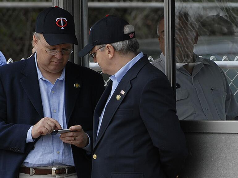 Wie das "White House Photo Of The Day" des Time Magazines belegt, ist Karl Rove, Berater von US-Präsident Bush, iPhone-User. Das Photo wurde aufgenommen während eines Besuchs des Präsidenten bei einer eingestürzten Brücke in Minneapolis.