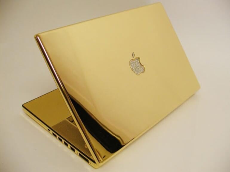 Alternativ bietet der US-amerikanische Apple-Händler PowerMax jetzt das güldene MacBook Pro von der Stange - Diamantenbezug des Apple-Logos auf Wunsch inklusive (via MacDailyNews).