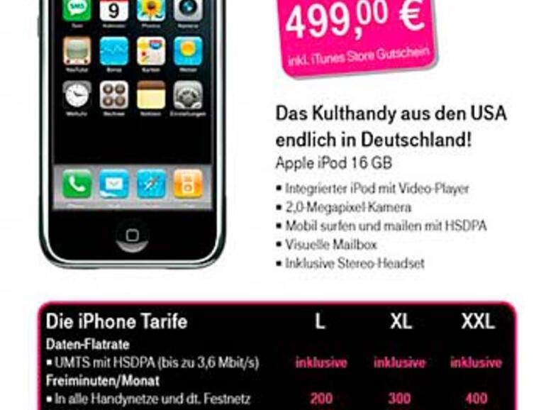 Ich habe 2 T-Mobile-Verträge, einen Privatkundenvertrag und einen Geschäftskundenvertrag. Über beide ServiceHotlines (und ich habe da schon mehrfach mit verschiedenen Menschen gesprochen) habe ich weder erfahren WANN das iPhone kommen soll, noch WAS ES KOSTET, noch IN WIE WEIT es UNTERSCHEIDE zum AMERIKANISCHEN GERÄT geben soll.