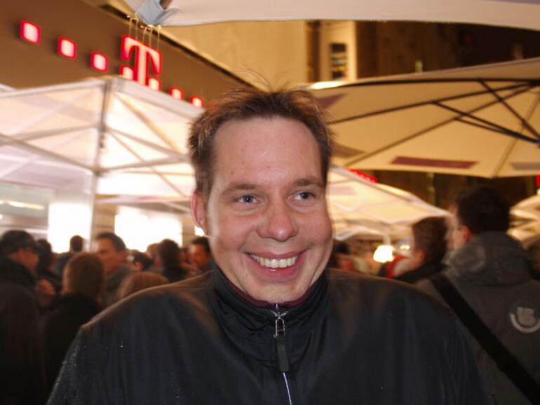 Jörg Schikowski aus Frechen (bei Köln) ist Fan von Apple-Produkten, iPod-Nutzer und war voller Neugierde auf den Europastart des iPhone. Er wollte live dabei sein und das Produkt einmal in Händen halten. Interesse am Kauf besteht (wenn, dann mit der kleinsten Vertragsvariante), anwesend war er aber nur zur Information.
