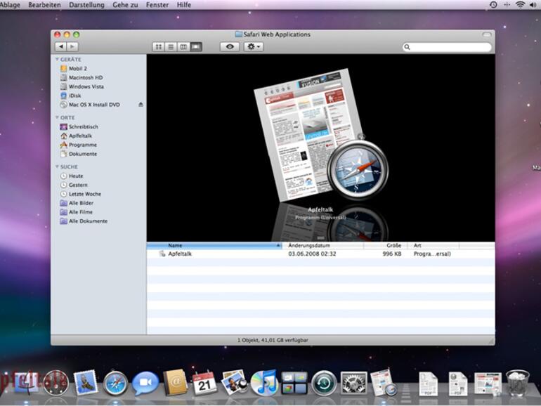 Vielversprechend wirkt dagegen die bereits implementierte Funktion, Webseiten als eigenständige Applikation im Dock abzulegen und mit einer reduzierten Safari-Version wie ein Programm zu öffnen. Im Gesamtbild fiel den Entwicklern auf, dass zahlreiche Applikationen in ihrer Datengröße geschrumpft sind, was vor allem an der Bereinigung von PowerPC-Code liegen dürfte. Denn Mac OS X 10.6 setzt nunmehr zwingend einen Intel-Prozessor voraus.
