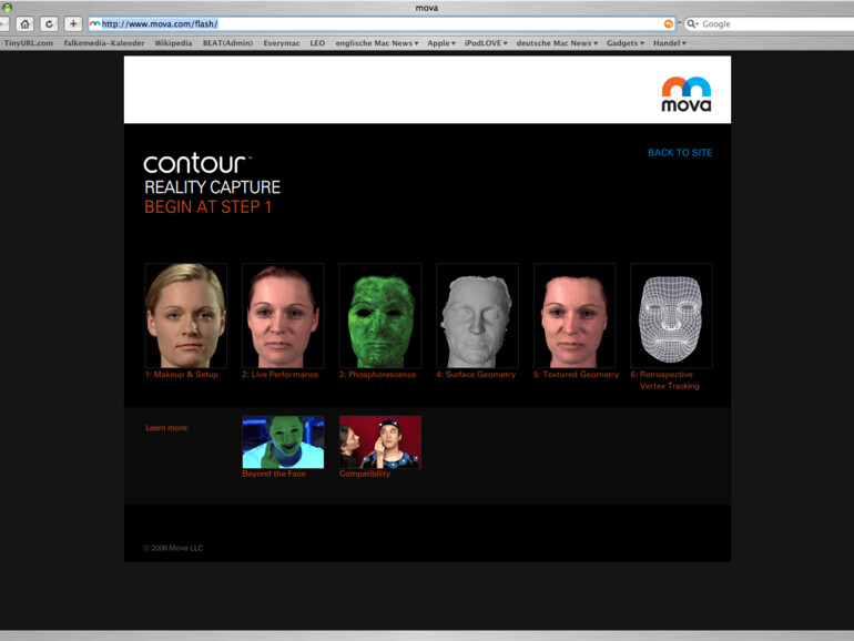 Das Mova Contour System arbeitet mit zwei synchronisierten Kameras, die die Bewegungen des Modells gleichzeitig aufzeichnen. Darüber hinaus stellt eine Auflösung von 200.000 Bildpunkten sicher, dass jede kleinste Eigenheit des menschlichen Gesichts erfasst werden kann.