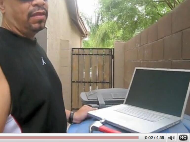 Um ehrlich zu sein, ist das allerdings ziemlich lustig. So nimmt er in einem kleinen Privatvideo sein altes PowerBook, dessen Display sich verabschiedet hat, mit einem Hammer auseinander. An der Kamera: Ice-Ts Ehefrau Coco ... Gerne nur hätte man das Rapper-Urgestein noch im Apple Store bei der Reklamation seines "defekten Gerätes" gesehen.