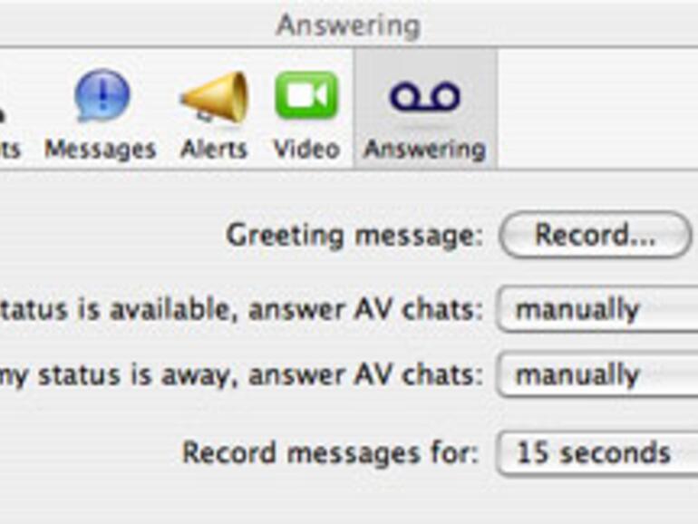 iChat-Feature enthalten sein soll. Hierbei handelt es sich um einen „Anrufbeantworter“, der es erlaubt eine Videobotschaft aufzunehmen, die abgespielt wird, wenn der User bei eingehenden Chats abwesend ist. Der Anrufer kann dann seinerseits eine Nachricht hinterlassen.