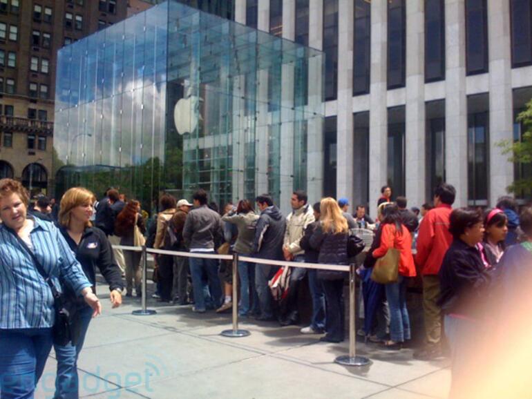 "Die Schlange ist rund 60 Leute lang", berichtet die US-amerikanische Nachrichtenseite Engadget unter Berufung auf eigene Quellen vor Ort. Obwohl der Apple Store 24 Stunden pro Tag geöffnet hat, formt sich seit Stunden vor den Eingangspforten eine Menschenreihe. "Die meisten wissen gar nicht, weswegen sie anstehen", resümiert Engadget, "während andere wiederum glauben, sie campierten draußen, um das iPhone 3G [als erste erwerben zu können]."