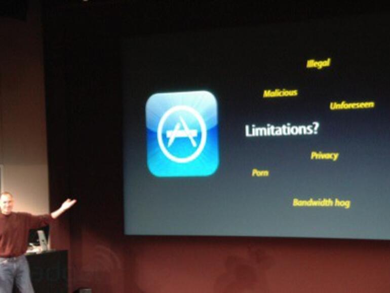 Wenn auch die Umstände im Einzelnen noch nicht ganz geklärt sind, so scheint jedoch die Veröffentlichung im Store an eine vorige Überprüfung durch Apple gekoppelt zu sein: "Einige Programme werden wir nicht veröffentlichen - Porno-Software, zum Beispiel. Oder Schadprogramme", so Jobs.