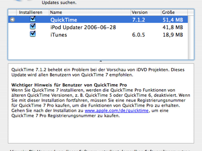 Hinweis: Nachdem Sie mit iTunes 6 oder neuer Musik im iTunes Music Store gekauft haben, müssen Sie außerdem Ihre anderen Computer, mit denen Sie Musik im iTunes Music Store kaufen, ebenfalls auf die neueste iTunes Version aktualisieren."