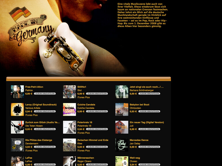 Zwischen 5,94 und 6,99 Euro kosten die unterschiedlichen Alben. Darunter sind Künstler wie beispielsweise Rio Reiser, Fettes Brot, Söhne Mannheims, Juli, Seeed und viele mehr. iTunes-Link