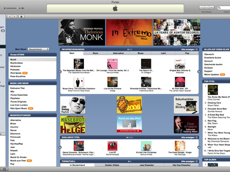 Die Fussball WM 2006 in Deutschland bestimmt auch die iTunes Store Top Ten: Mit Platz 4, 7 und 8 waren die Gassenhauer von Herbert Grönemeyer, Sportfreunde Stiller und Bob Sinclair nicht nur auf Deutschlands Fan-Meilen ein Hit.