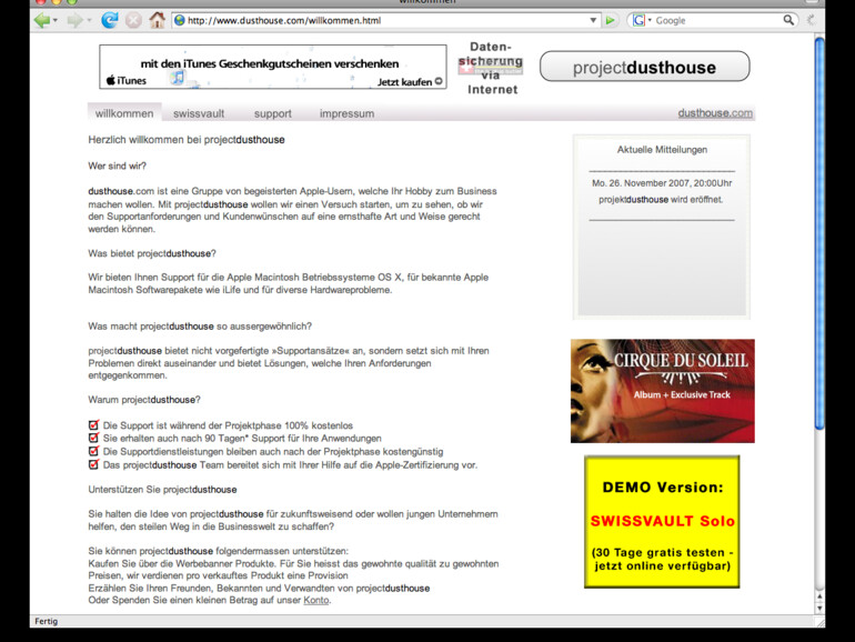 Per E-Mail hat man auch die Möglichkeit, Screenshots von Software-Problemen einzureichen. Mit projectdusthouse möchten die Macher testen, ob Sie Support-Anfragen ernsthaft gerecht werden und damit das "Hobby zum Business" machen können.