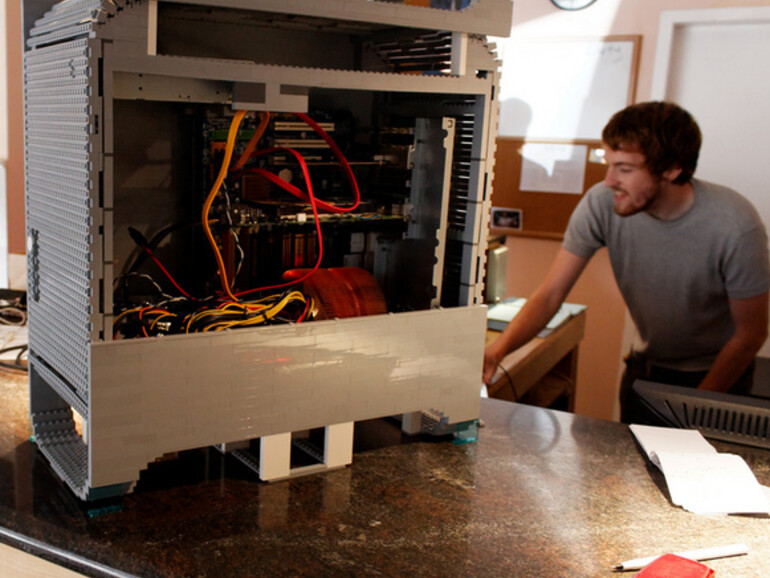 "Der Mac Pro wurde in Lego Digital Designer 2.0 entworfen", berichten die US-Redakteure und geben wohlweislich keine Auskunft darüber, wieviele Stunden der auf das Designen folgende Aufbau verschlungen hat. Doch das lebensgroße Macintosh-Modell hat nicht nur ein bewundernswertes Äußeres zu bieten: Im Innern schlägt ein echtes Computerherz - oder genauer: zwei davon.
