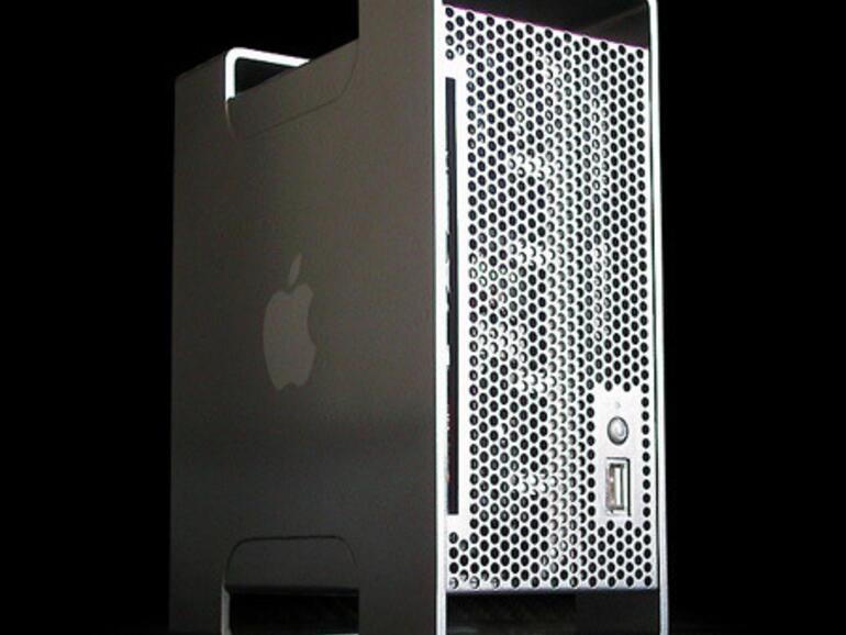 Wem es eher nach einem Schmuckstück für den Schreibtisch gelüstet, der darf sich am Mac mini Pro erfreuen: Mit - zugegeben - einigen aufwendigeren Handgriffen wird aus dem kastenförmigen Rechner eine beinahe exakte Miniatur-Kopie des Mac Pro: Inklusive aluminiumfarbenen Handgriffen, gelöcherter Front mit USB-Port und Power-Knopf.