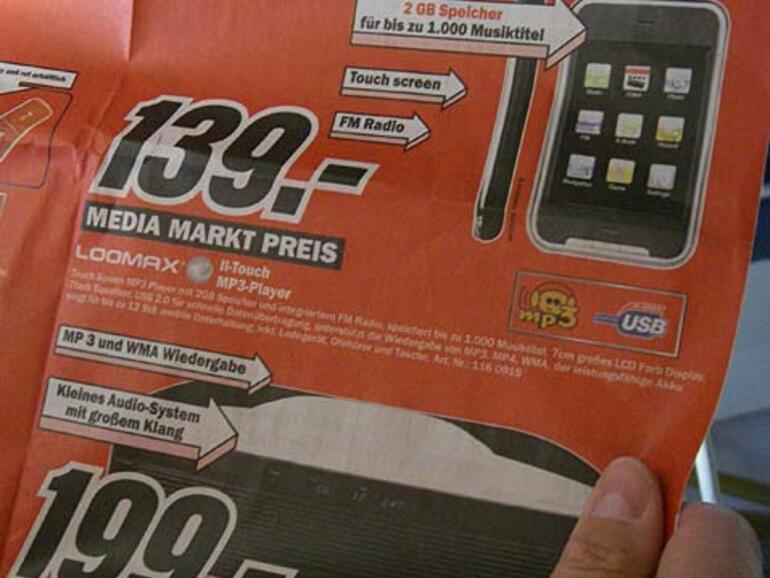 Dem Media Markt kann der Presserummel um seine Werbung nur Recht sein, steigert dies doch nicht zuletzt die ebenfalls über das Unternehmen vertriebenen Apple-Produkte. Denn auch diese liegen dort in den Regalen. Zudem sieht man sich rechtlich auf der sicheren Seite. Es handele sich nicht um ein Plagiat, sondern um ein eigenständiges Gerät. Das aber erkennt der Verbraucher wirklich nur, wenn er den iPod touch genau kennt und den Werbetext genauer liest.
