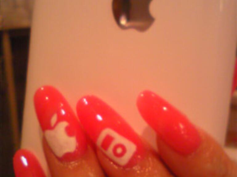 Die Nagellänge macht zwar die Bedienung von Apple-Geräten nicht unbedingt leichter, aber das ist in diesem Fall wohl eher zweitrangig. Um auch dem Rest des Körpers etwas Gutes zu tun, empfiehlt sich dazu der Verzehr der Apple-Äpfel und wem das Nagel-Design etwas zu feminin ist, ersetzt den iPod eben durch einen Mac Pro oder lässt sich den Apfel in die Frisur einarbeiten ...