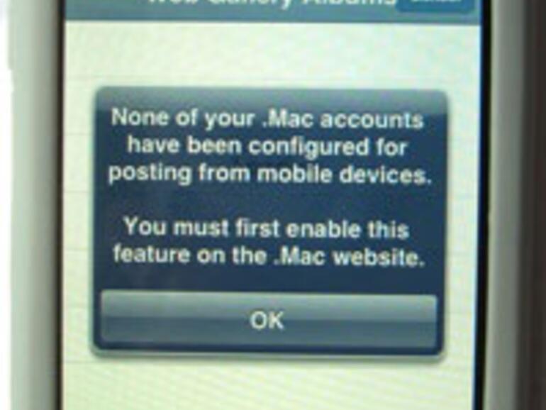 Auch vom iPhone aus sollen sich Bilder hinzufügen lassen; der Apple-Geschäftsführer präsentierte sogar eine eigens dafür auf dem iPhone vorhandenen Taste namens Send to Web Gallery. Zum dortigen Zeitpunkt war auf den iPhone-Bildschirmen jedoch keines dergleichen zu finden; einige Stunden später erschien - ohne jegliche Synchronisierung - besagte Taste bei mehreren .Mac-Abonnenten plötzlich
