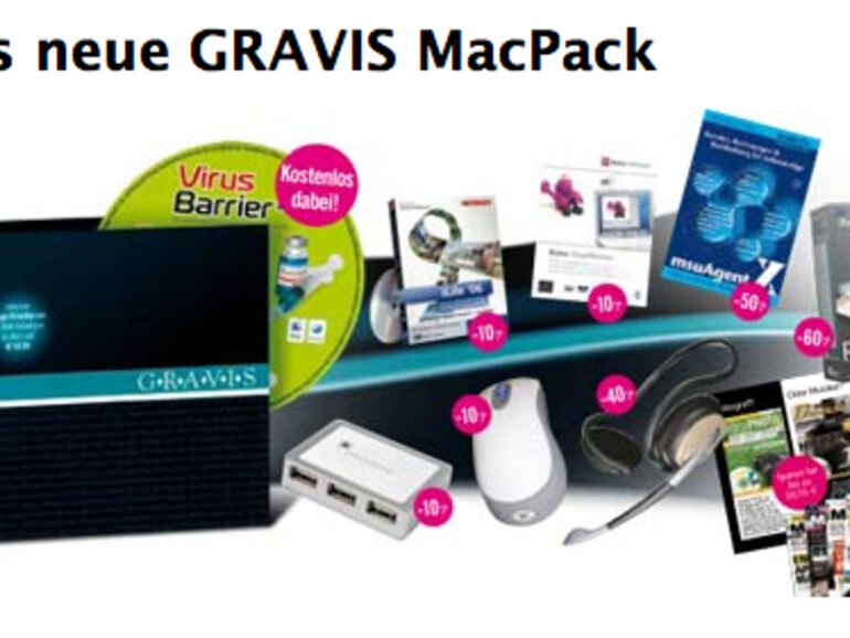 Das Gravis MacPack beinhaltet neben der Vollversion von Intego Virus Barrier X.4 OEM im Wert von 59,99 Euro und den sieben Favourite Coupons, mit denen bis zu 190,- Euro gespart werden können. Zusätzlich gibt es ein Maclife-Vorteils-Abo und je ein Mini-Abo der Beat und DigitalPHOTO.