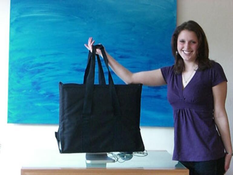 Gefertigt werden die Transportbeutel in Handarbeit, verfügbar sind sie sowohl für die PowerPC-iMacs ab der G5-Form wie auch die neuen Intel-iMacs mit Aluminium-Gehäuse. Sie alle dürfen für 89,50 Euro (20"-Modell) oder 95,50 Euro (24"-Modell) plus 6,90 Euro Versand online bestellt werden. Die Lieferzeit beträgt zur Zeit 14 Tage. Für alle, die ihren iMac häufig transportieren müssen, eine echte Erleichterung. Und noch dazu eine, auf die modebewusste iMac-Eigner kaum verzichten können.