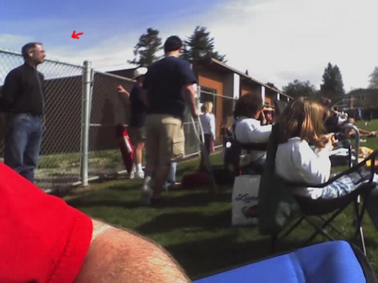 Niemal ist das Photo echt, den wenn es das währe warum ist dann der rote Pfeil mit verunschärft worden? Auch an dem Arm an der unteren linken seite ist deutlich zu erkennen, das er eingefügt wurde. das wurde vermutlich gemacht, um den Schattenwurf von Steve zu verschleiern. Außerdem ist zu erkennen, das die lichtverhältnisse nicht übereinstimmen. Das würde sogar ein Bilinder erkennen und das kann ich behaupten da ich auf einem Auge auch nicht sehe.