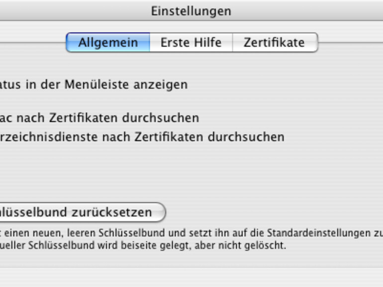 2. Man startet das Programm Schlüsselbund, welches im Ordner Dienstprogramme liegt und wählt in den Einstellungen des Programms den Punkt „Status in der Menüleiste zeigen“. Hiernach taucht oben rechts in der Menüleiste ein kleines Symbol eines Vorhängeschlosses auf, worunter sich unter anderem die Möglichkeit „Bildschirm schützen“ befindet. Wählt man diese Option, startet sogleich der Bildschirmschoner. Möchte man danach wieder auf den Mac zugreifen, so wird zunächst die Eingabe des Benutzerkennworts verlangt.