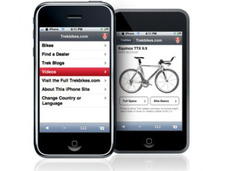 Der Hersteller Trek bietet seit dem 15. Januar dafür seine Webseite in einer speziellen iPhone- und iPod-touch-Version an. Damit sollen sich die Kunden schnell und einfach zurecht finden, ohne lange Scrollen zu müssen. Informationen zu den Fahrrädern, Blogs, Videos und die Händlersuche mit Google-Maps-Funktionalität sind ebenfalls inklusive.