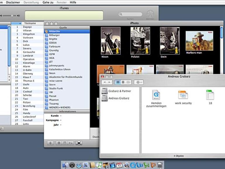 Die auf der Startseite der Website zu lesenden Begründungen dafür sind ganz unterschiedlich. Mal hat die Putzfrau den Stecker im Serverraum gezogen, mal surfen alle Mitarbeiter verbotener Weise auf einer Sex-Website oder der Umweltbeauftragte hatte etwas gegen Geräte im Stand-By-Modus. Also leitet die Website einen einfach auf einen Mitarbeiterrechner um. Und dort findet man dann alles wie gewohnt unter Mac OS X vor. Beim Chef eine Excel-Liste für die Bundesliga-Spiele, bei der Praktikantin die Urlaubsfotos und in iTunes die Musik, die man bereits für andere Kunden komponieren ließ.