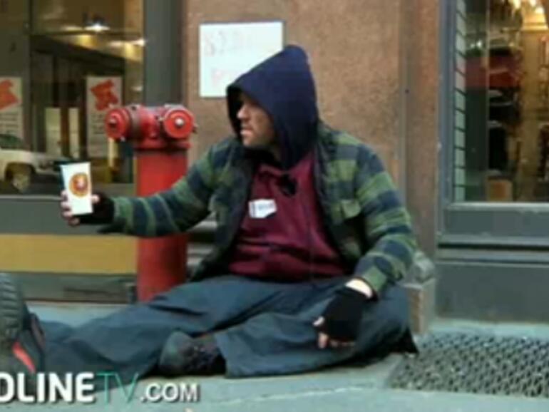 Klar ist die Werbung echt, und der Penner nicht.