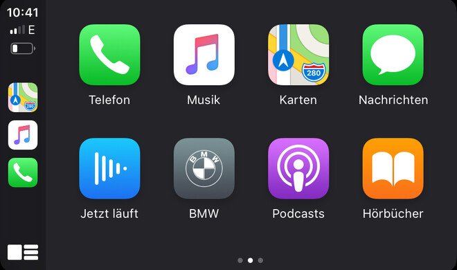 Im direkten Vergleich mit dem Vorgänger hat Apple viele Details von CarPlay überarbeitet. Dies fällt bereits links in der Navigationsleiste auf. Dort wanderten Uhrzeit, Empfangsanzeige und Ladestand des iPhones (fahrzeugabhängig) von der Mitte nach ganz oben. Dafür wanderten die drei zuletzt verwendeten Anwendungen besser erreichbar in die mittlere Position. Darunter ist nun nicht mehr der Home-Button zu finden, sondern dieser wich einem zweireihigem Icon-Symbol, das jedoch ausgewechselt wird, sobald man sich auf dem Home-Bildschirm befindetDie Funktion ist dennoch gleich geblieben. Grundsätzlich sind auch die App-Ansichten deutlich runder geworden und erinnern endlich stärker an die Designs von Apples eigenen iOS-Apps.