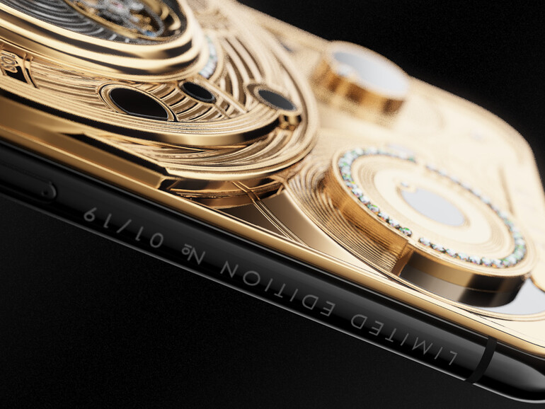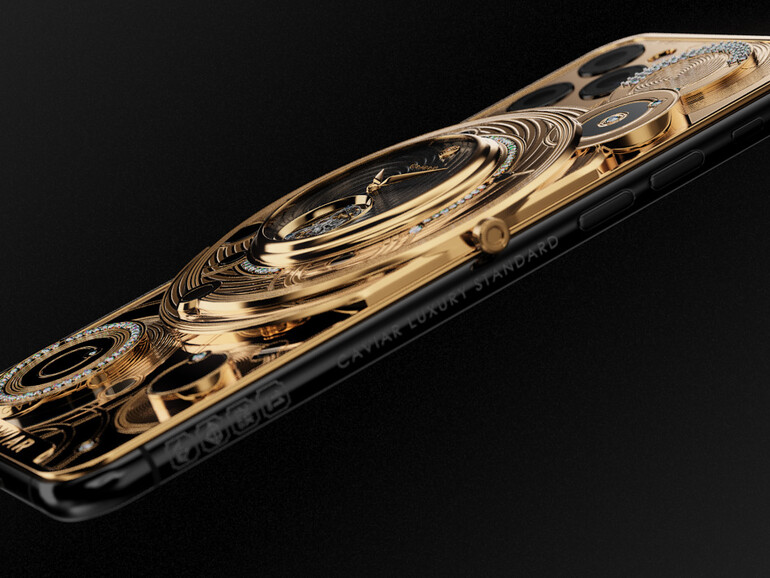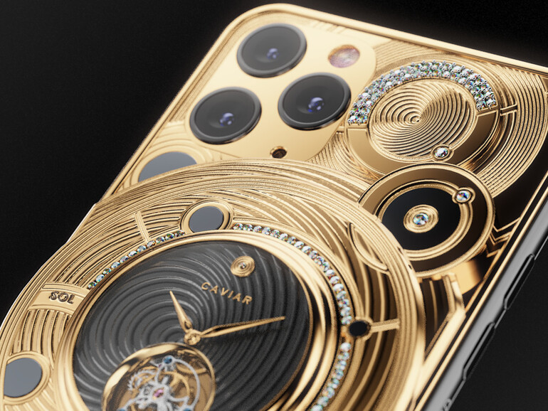 Das Caviar Solarius ist das vermutlich teuerste iPhone der Welt. Das von einem russischen Anbieter veredelte Smartphone beinhaltet das iPhone 11 Pro mit 64 GByte Speicher. Doch allein dafür wäre der Preis von umgerechnet rund 84.000 Euro natürlich etwas hoch. Doch Caviar hat beim Solarius so richtig aus den Vollen geschöpft und ein Gehäuse um das Gerät herum gebaut, das mit 500 Gramm Gold überzogen ist. Die Idee: Der Besitzer soll das Gefühl haben, einen Goldbarren in Händen zu halten. Bei dem Gewicht durchaus denkbar.