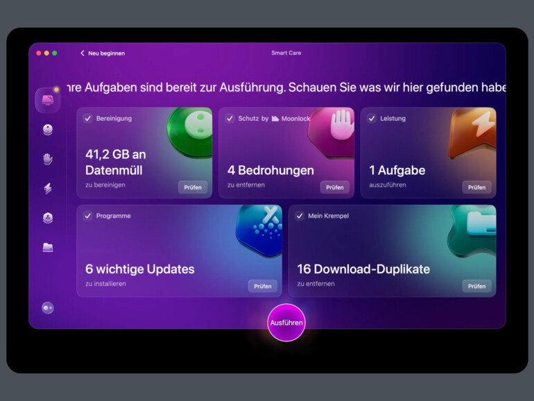 Das aktualisierte CleanMyMac verfügt nun über sechs Hauptmodule und mehr als 25 Tools für verschiedene Wartungsaufgaben. Ein neuer Assistent bietet Berichte zur Mac-Gesundheit und -Sicherheit sowie Wartungserinnerungen. Das aktualisierte Modul „My Clutter“ hilft Nutzenden bei der Speicherverwaltung durch die Identifizierung großer, alter und doppelter Dateien.